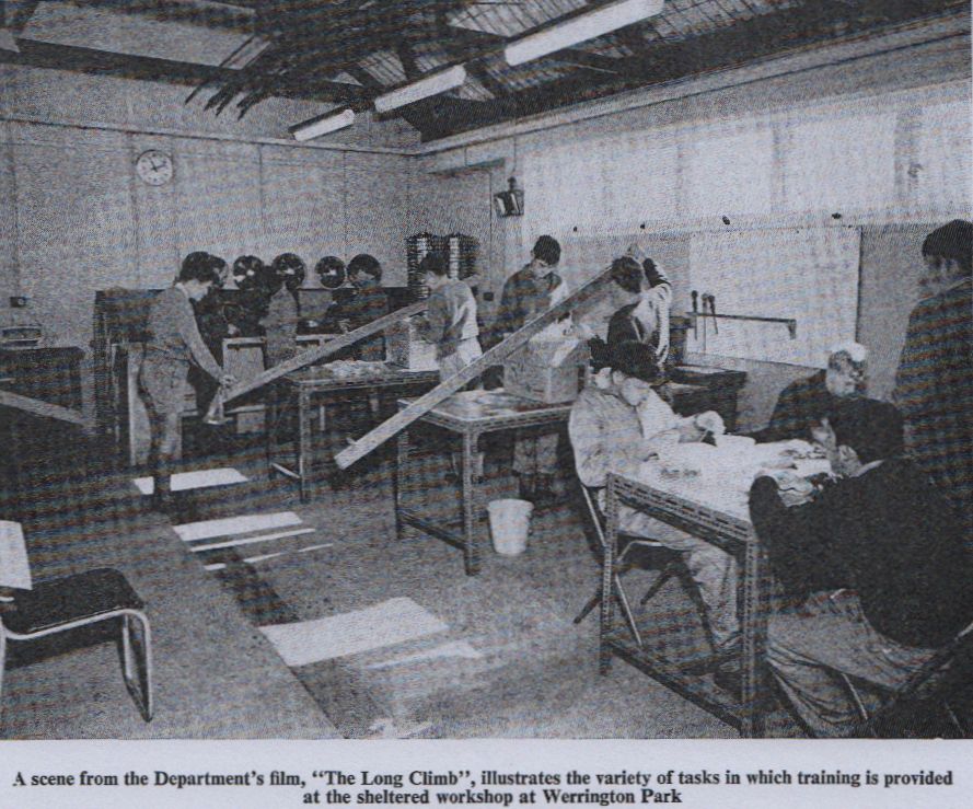 A scene from the Department's film, "The Long Climb", illustrates the variety of tasks in which training is provided at the sheltered workshop at Werrington Park
