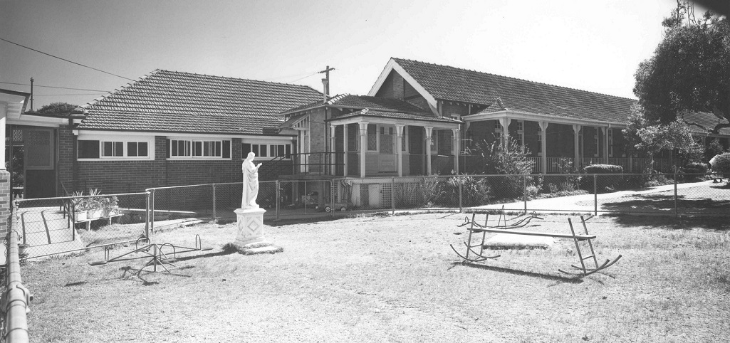 Description: This is a copy of an image from the Sisters of Mercy, North Sydney Congregation archives collection. This image shows the outside of the Administration Block and the Nursers’ Dining Room at Our Lady of Mercy Home, Waitara.
