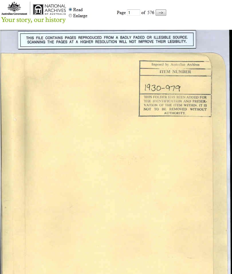 Description: This is a digitised version of a file held by the National Archives of Australia.
