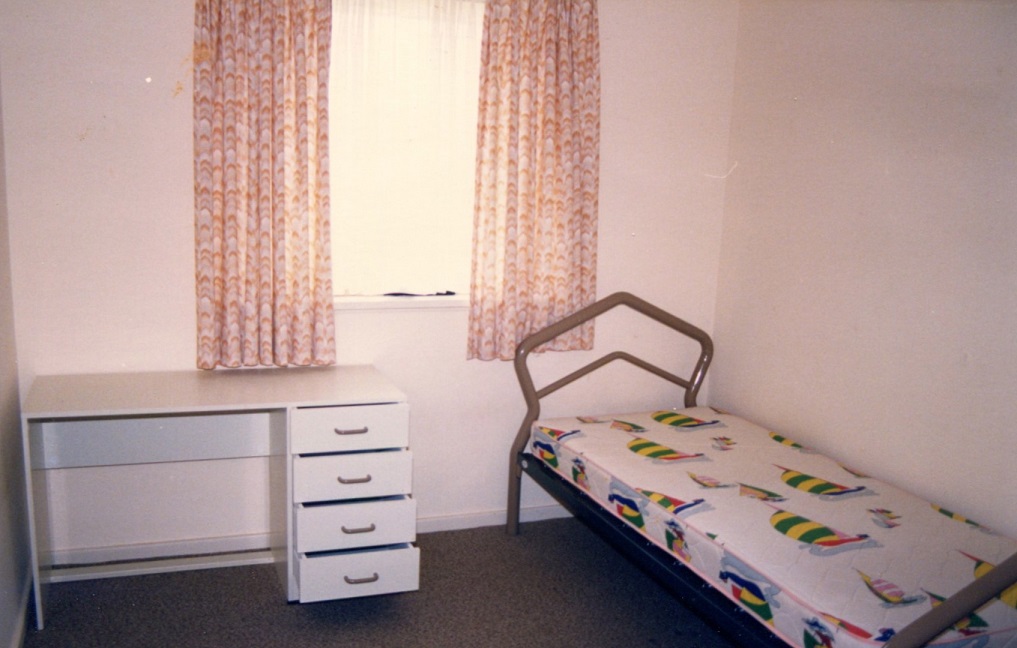 Description: ‘Bedroom with desk, Hollywood Children’s Village’ is a digital copy of an undated colour image held in the Hollywood Children’s Village file at the Salvation Army Heritage Museum WA.