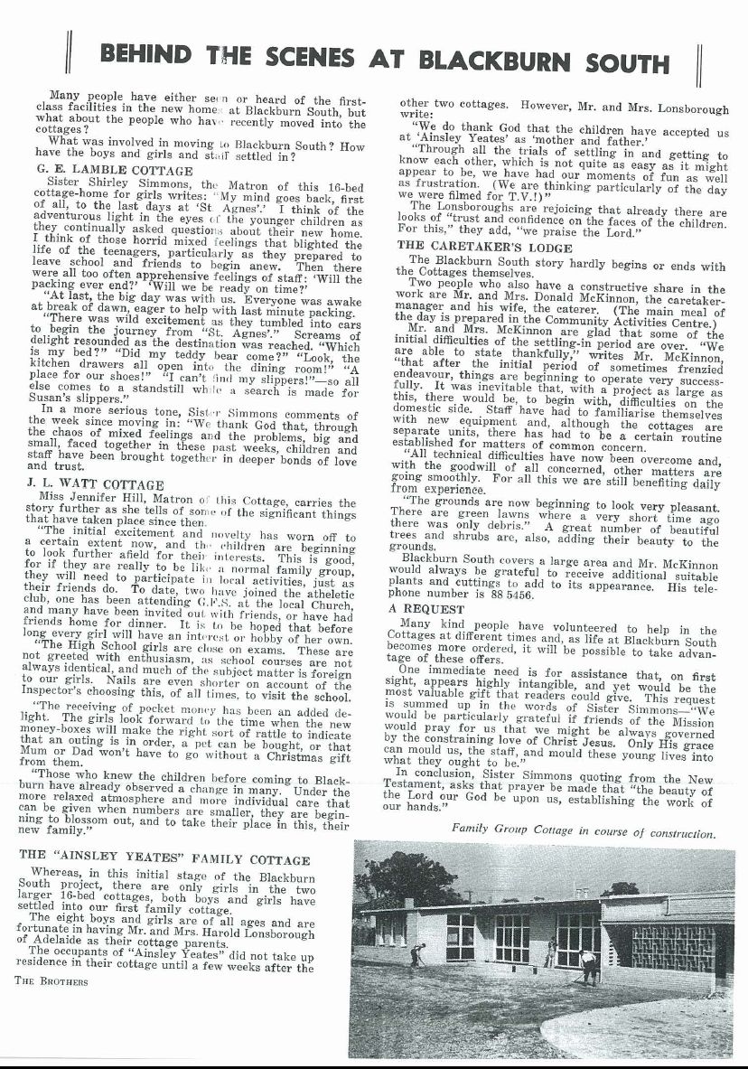 Description: This article, which discusses the Blackburn South Cottages, was published in the Mission of St James and St John’s journal, The Brothers.