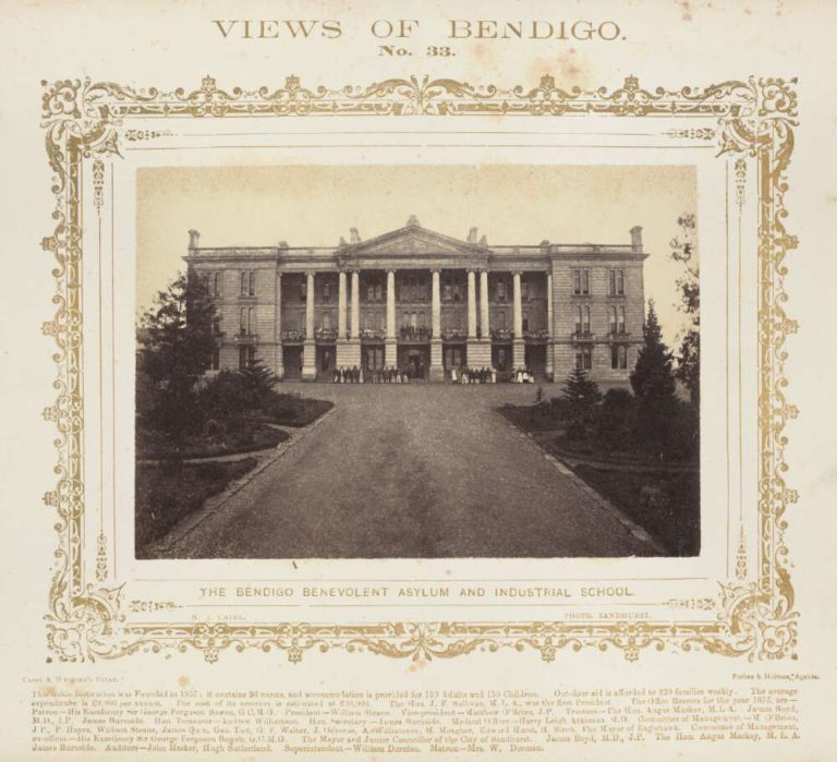 In 1868, the Victorian government established an Industrial School within the grounds of the Bendigo (or Sandhurst) Benevolent Asylum. ‘Neglected’ children had been housed at the Asylum since it was founded in 1860.The Asylum closed in 1885.