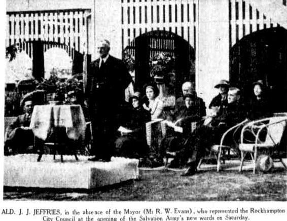 Description: This image included the caption: Ald. J. J. Jeffries, in the absence of the Mayor (Mr R. W. Evans), who represented the Rockhampton City Council at the opening of the Salvation Army’s new wards on Saturday.