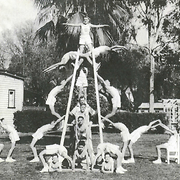 Description: ‘Boy Gymnasts, Salvation Army Boys’ Home, Nedlands’ is a digital copy of an undated photocopied image held in the Nedlands Boys Home closed social work file at the Salvation Army Heritage Museum WA, showing boys and possibly a staff member. The image shows boys in a gymnastic display in the grounds of the Home.