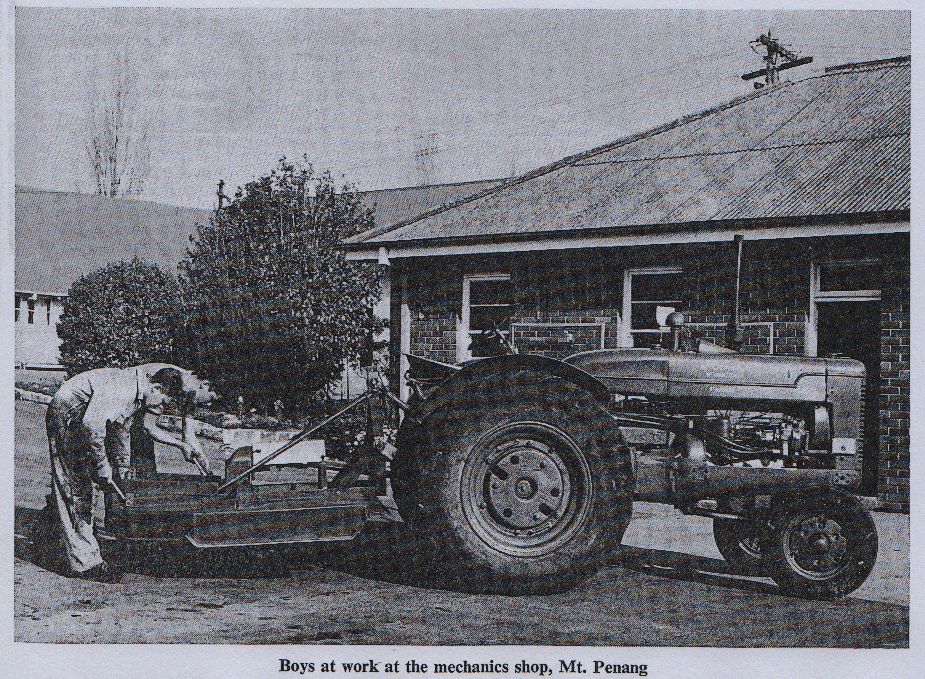 Boys at work at the mechanics shop, Mt. Penang