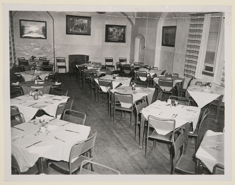 Description: This is a a copy of a photo from the archival series ‘Photographs of Departmental Institutions’, Volume 2, the original caption states: The boys’ dining room showing table amenities, 1953.
