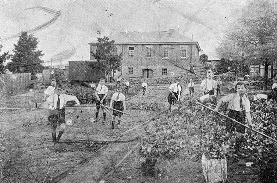 Boys working in the vegetable patch at Kennerley Boys' Home