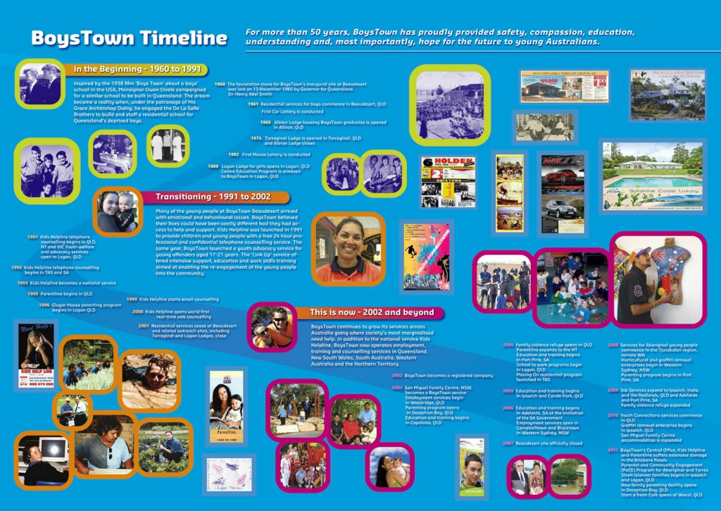 Description: This is a copy of a timeline produced in 2013, showing the administrative history of the BoysTown organisation. In 2016, the organisation changed its name to yourtown.