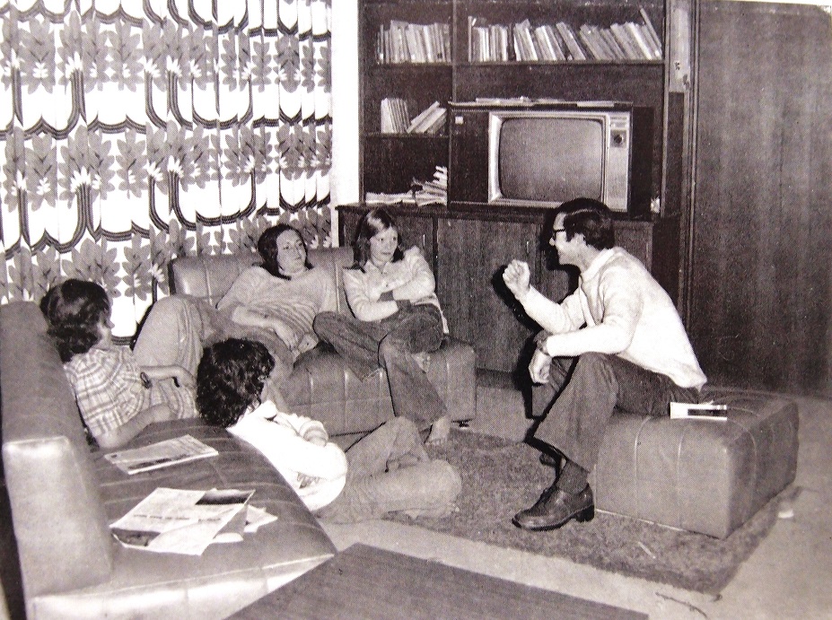 Description: ‘Bridgewater group’ is a digital copy of an image included (p.42) in the Annual Report 1975 of the Department for Community Welfare. The caption reads, ‘Bridgewater is planned to replicate suburban living’.