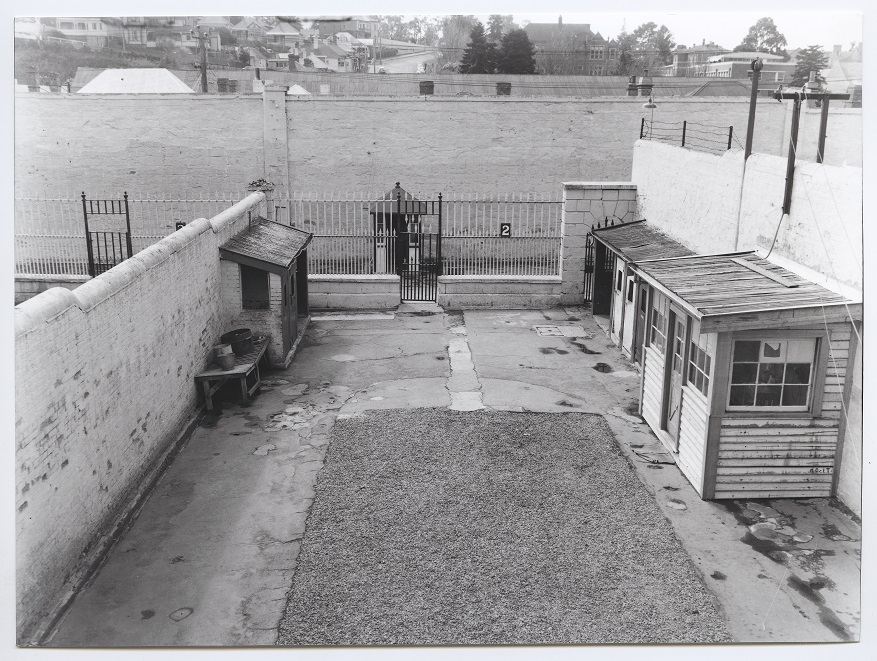Campbell Street Gaol, Hobart - Courtyard view towards external wall and the Glebe