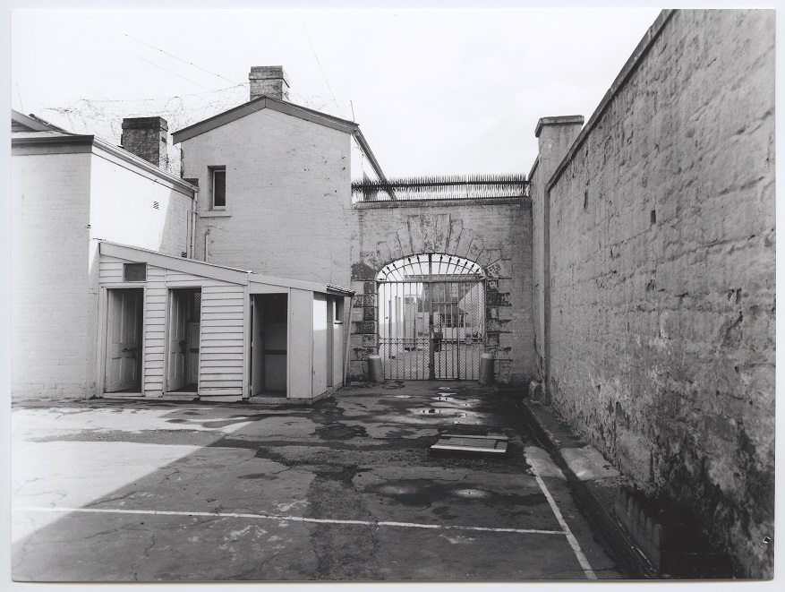 Campbell Street Gaol, Hobart - Internal courtyard showing outside wall, entry gates and outbuildings