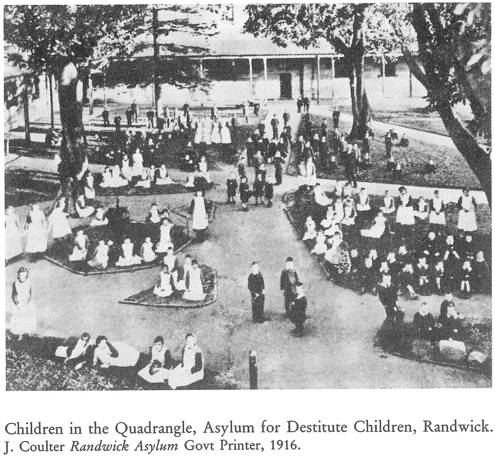 This image was published in Children of the Back Lanes: destitute and neglected children in colonial New South Wales in 1986. The original image is held by the State Archives of New South Wales. This image has been dated as 1916, however as the asylum had closed by this date it is assumed that this image was taken slightly earlier than 1916.