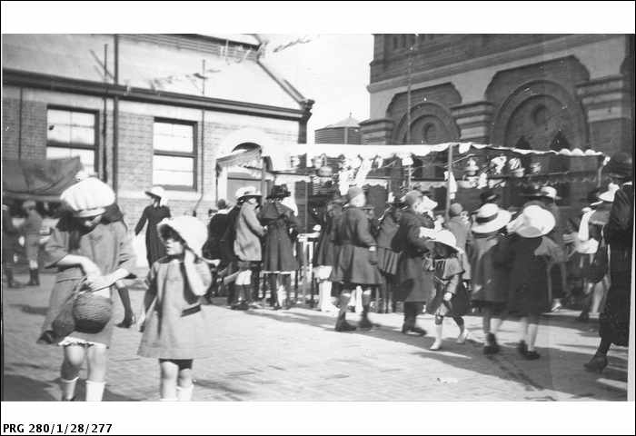 Description: This image shows children in the grounds of the St Vincent de Paul Orphanage, which was also known as Goodwood Orphanage.