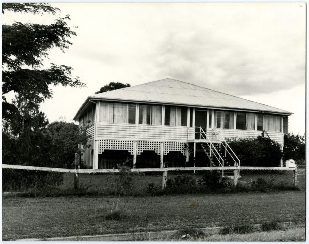Description: This is a photograph of the St George’s Family Group Home located at Mason Street, Rockhampton, taken in 1979. It shows a raised single-storey weatherboard cottage with enclosed verandahs, and central front staircase.