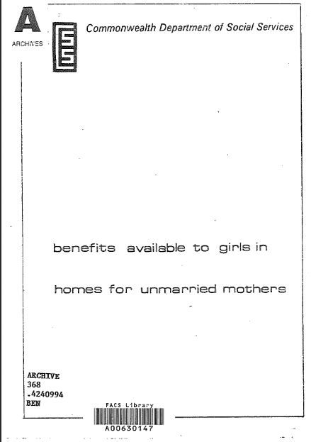 This pamphlet was provided to the Commonwealth Contribution to Former Forced Adoption Policies and Practices Senate Inquiry in 2011 by the Department of Education, Employment and Workplace Relations.