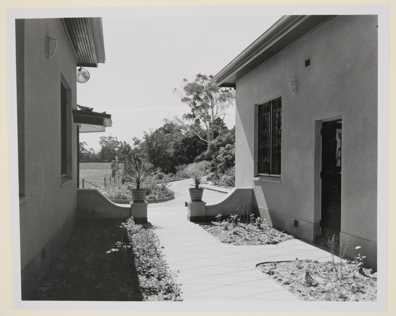 Description: This is a a copy of a photo from the archival series ‘Photographs of Departmental Institutions’, Volume 2, the original caption states: Looking from one of the main entrances into the grounds 1957.