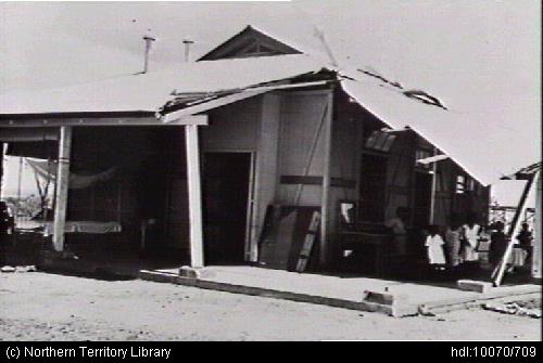 Description: This image shows the damage to a female ward for on the Channel Island Leprosarium following a cyclone.