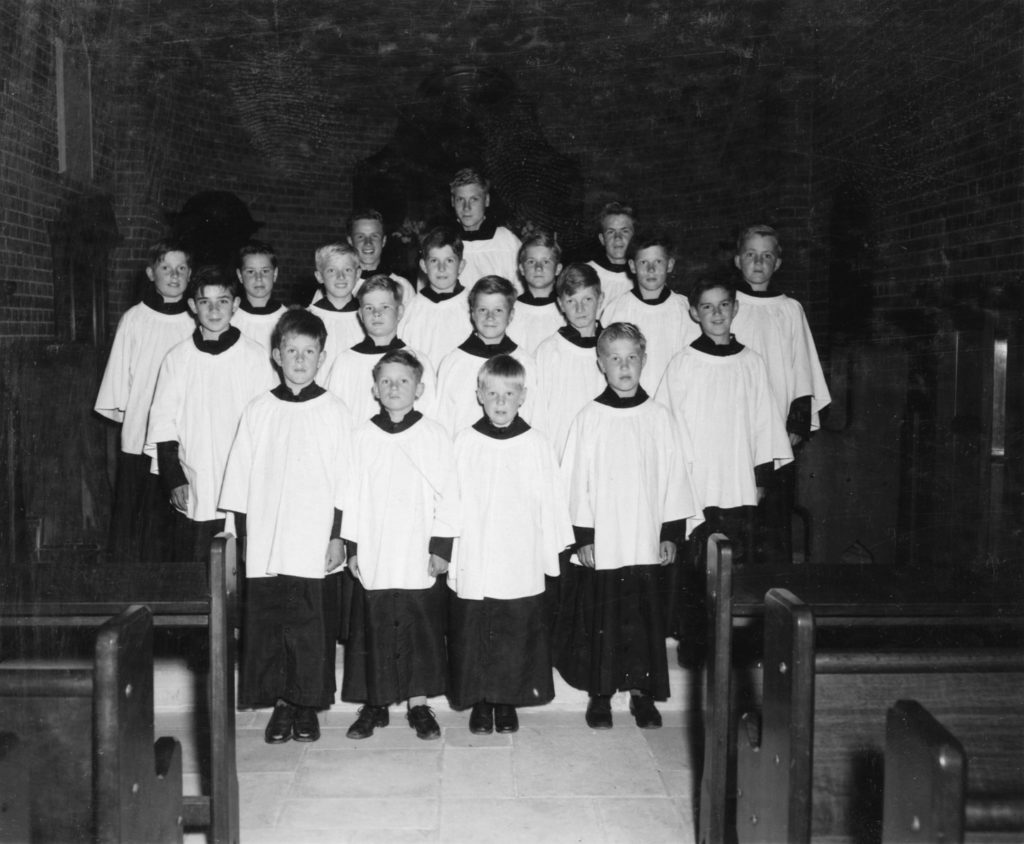 Description: This is a digitised copy of a photographic print and is part of the group of two images titled ‘Fairbridge boys choir [picture]’ held at the State Library of Western Australia. The image shows the boys choir Fairbridge Farm School, Pinjarra in August 1954.
