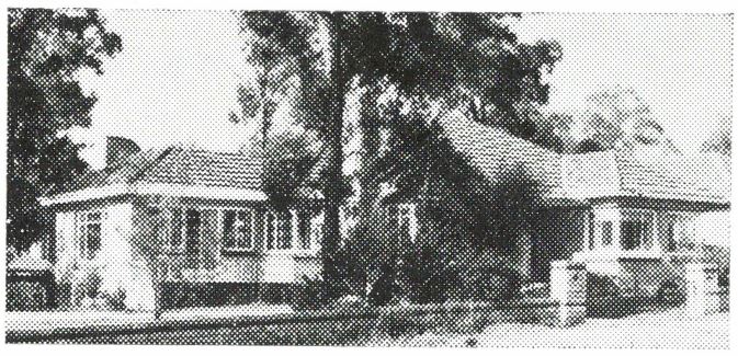 Description: This photograph was published in the Kildonan Children’s Home Annual Report, 1961. It shows the front of a large brick cottage, with lawn, trees, and a low brick fence in front. The description published alongside the photograph reads “Family Group Home, Lalwa St., Blackburn – a quiet tree-lined street.”