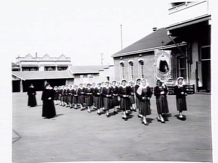 Girls at St. Vincent De Paul's Orphanage during a religious parade