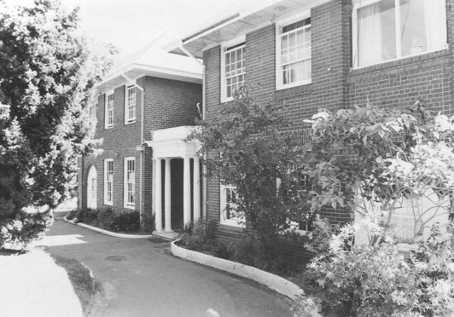 Description: This is an image of the Glen Mervyn Junior Red Cross Home. It shows a large two-storey brick building with two wings, and four columns at its entrance. This photograph is undated. The date given is an estiamate.