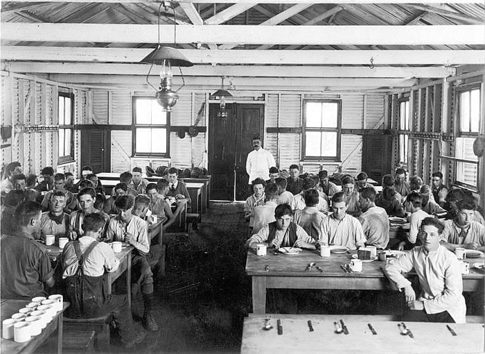 Scheyville was 2150 acres and consisted of living facilities for the young men, Farm Manager’s residence, a killing room, butchers shop and a Post Office known as Scheyville. The farm was divided into paddocks for different purposes and consisted of a dairy, piggery, sheep section, farm section, orchard, vegetable garden, millet broom making plant, sawmill, blacksmiths, saddlers, wheelwrights, carpenter’s and tinsmith’s shops. Within 18 months of starting the Dreadnought scheme, Scheyville had housed 361 youths.