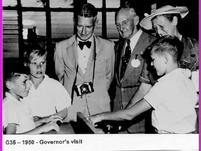 Description: Sir James Mitchell, the Governor and a former Premier of Western Australia, is shown here visiting Bindoon in the year before his retirement. The Governor is third from the left in the photo.