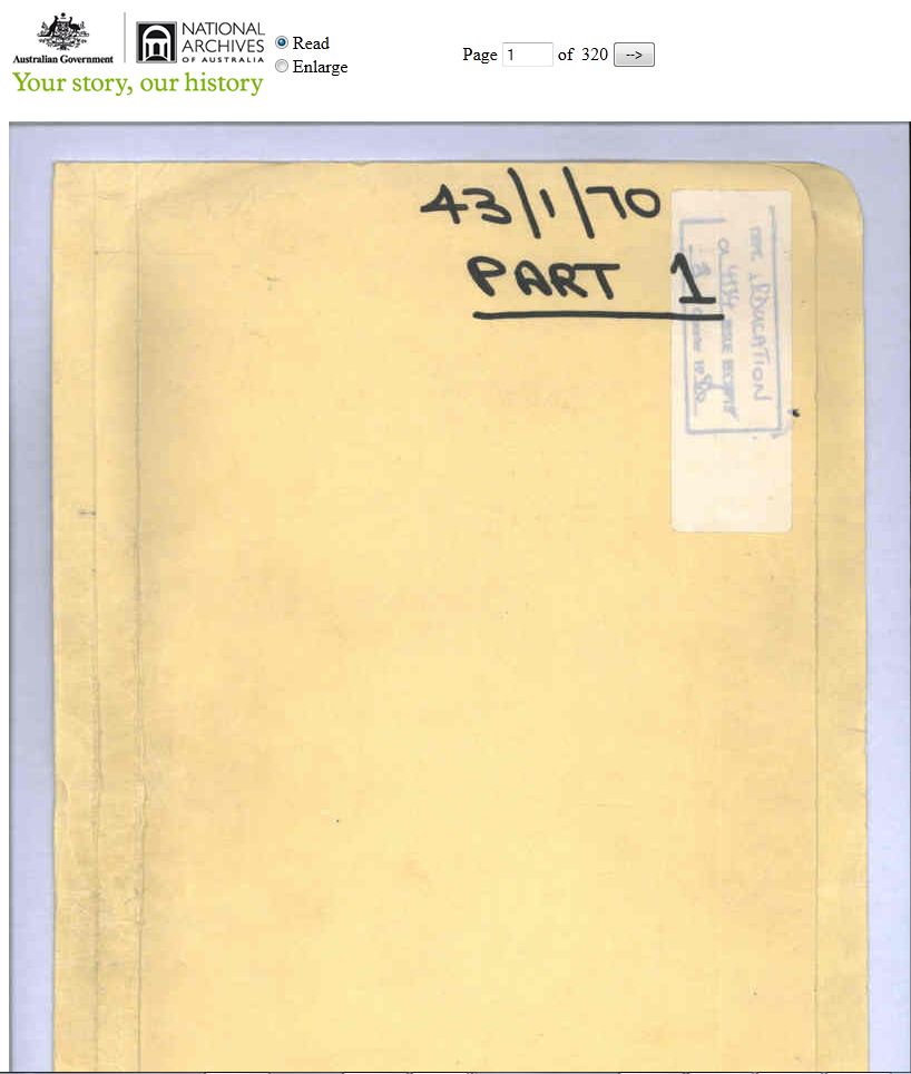Description: This is a digitised version of a file held by the National Archives of Australia.
