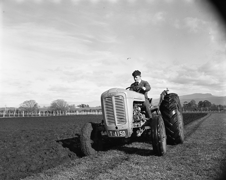 Hagley Farm School, student ploughing a field on a Ferguson tractor