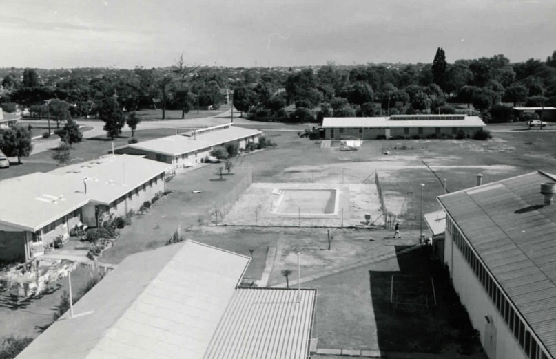 Description: ‘Hollywood Children’s Village, aerial photograph’ is a digital copy of an undated photograph held in the Nedlands Boys Home closed social work file at the Salvation Army Heritage Museum WA. From other information in the file, it is likely that the buildings shown are (clockwise from left) Pied Piper, Brand, and Buckingham Cottages, the gymnasium and the administration block. The photograph can be dated from 1969, when Buckingham Cottage opened.