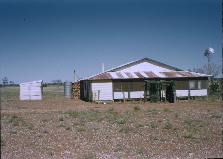 Description: This is a digitised copy of a slide and is part of the group of 40 images titled ‘Warburton Range missions, missionaries and Aboriginal people : part three [picture]’ held at the State Library of Western Australia. The image shows the hospital at Warburton Mission.