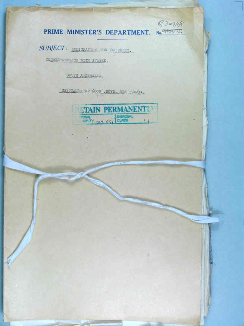Immigration encouragement - Correspondence with States - South Australia - Settlement of 6,000 boys