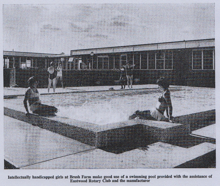 Intellectually handicapped girls at Brush Farm make good use of a swimming pool provided with the assistance of Eastwood Rotary Club and the manufacturer [original caption]
