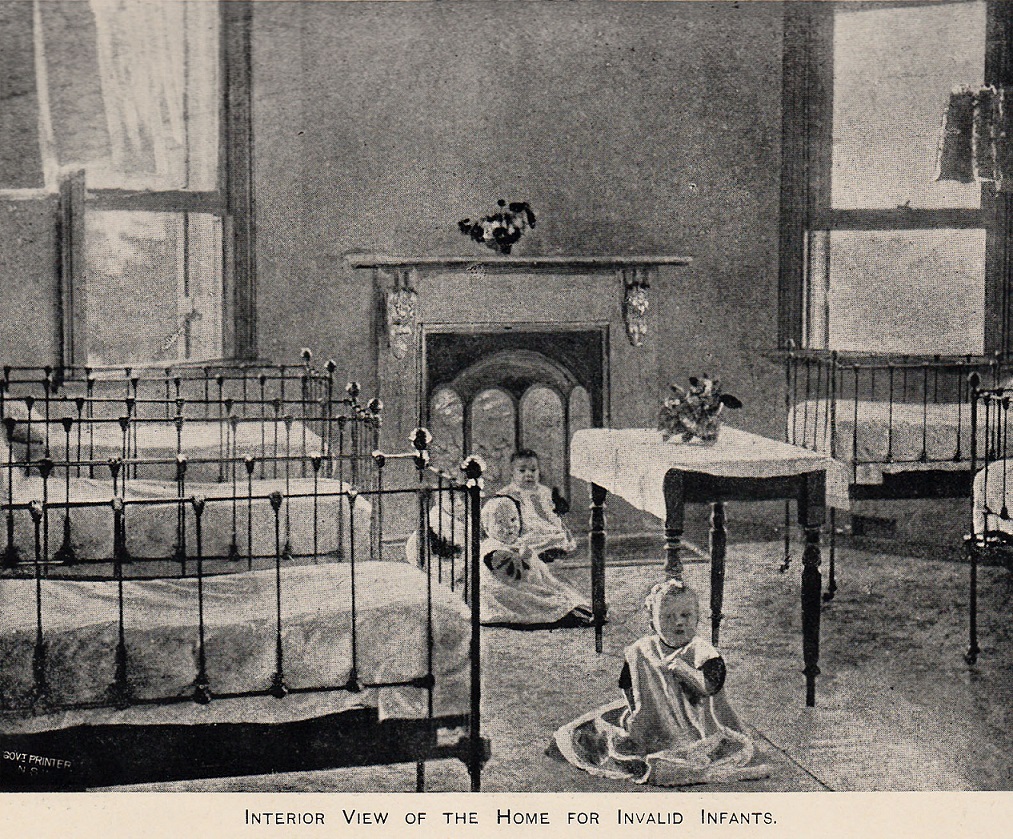 Description: This is a digital copy of an image that appeared in the State Children Relief Board Report for year ending 5 April, 1907. The image shows a nursery in Thirlmere Babies’ Home with babies sitting on the floor.