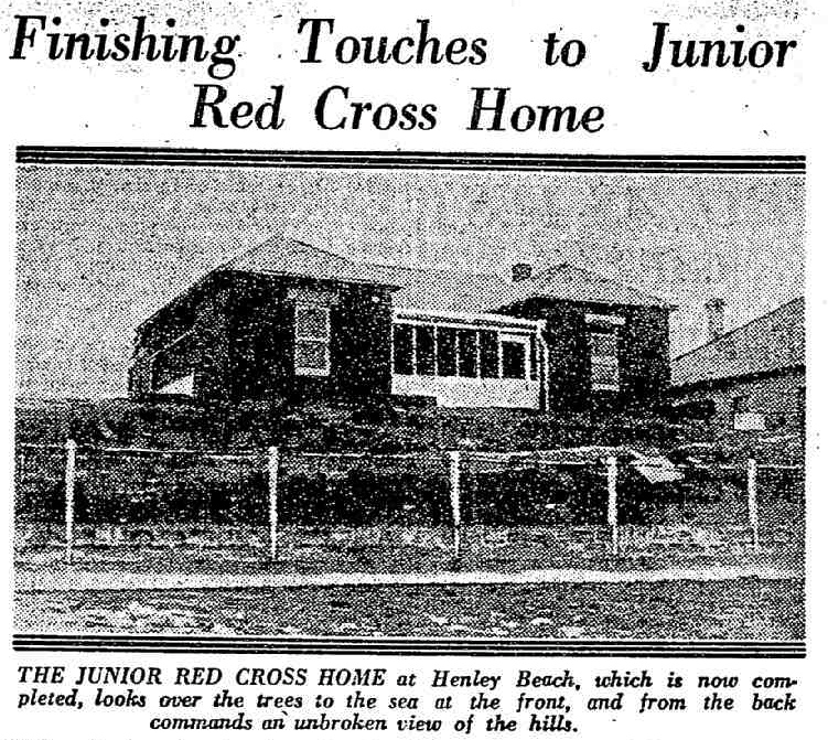The caption states: The Junior Red Cross Home at Henley Beach, which is now completed, looks over the trees to the sea at the front, and from the back commands an unbroken view of the hills.