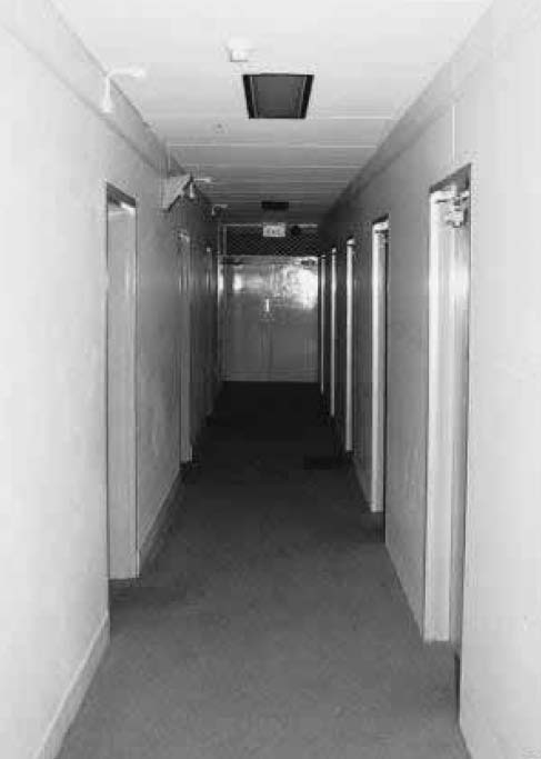 Kalimna - dark hallway on lower level (note doorways are staggered)