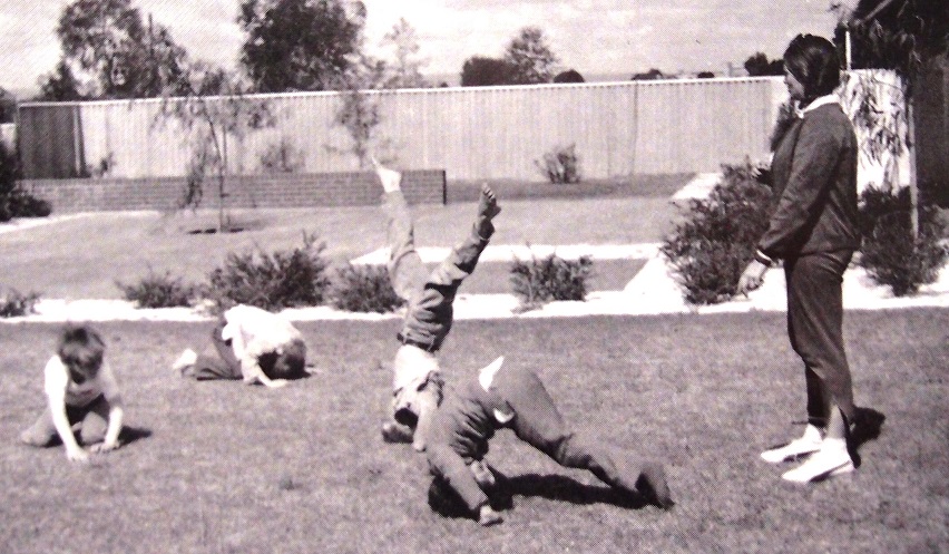 Description: ‘Koorana, exercise’ is a digital copy of an image included (p.53) in the Annual Report 1975 of the Department for Community Welfare. The caption reads, ‘Children work to improve physical performance’.