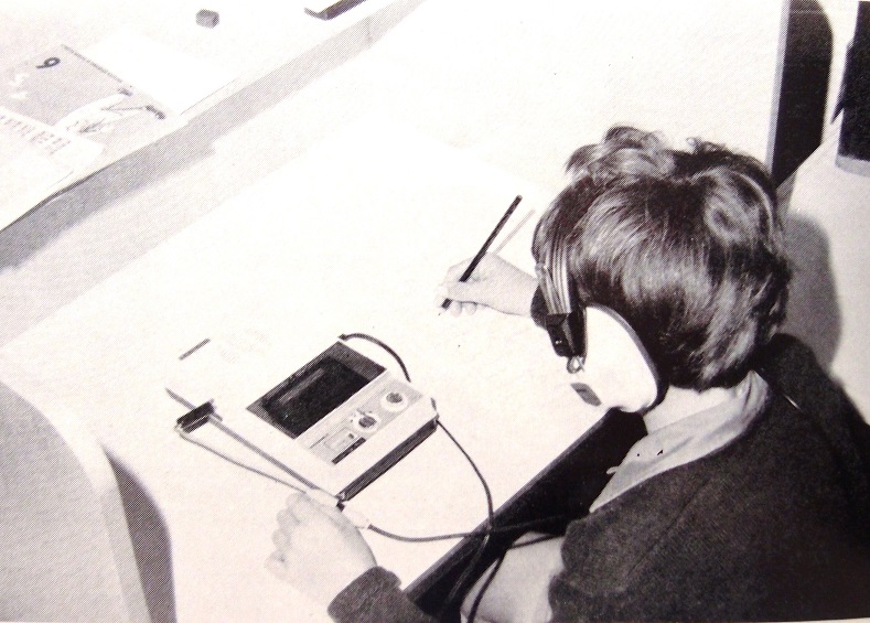 Description: ‘Koorana listening’ is a digital copy of an image included (p.50) in the Annual Report 1974 of the Department for Community Welfare. It shows a boy in a language skills development program. The caption reads, ‘Koorana – using recorded material for training sustained concentration and rapid response with interfering background noise’.