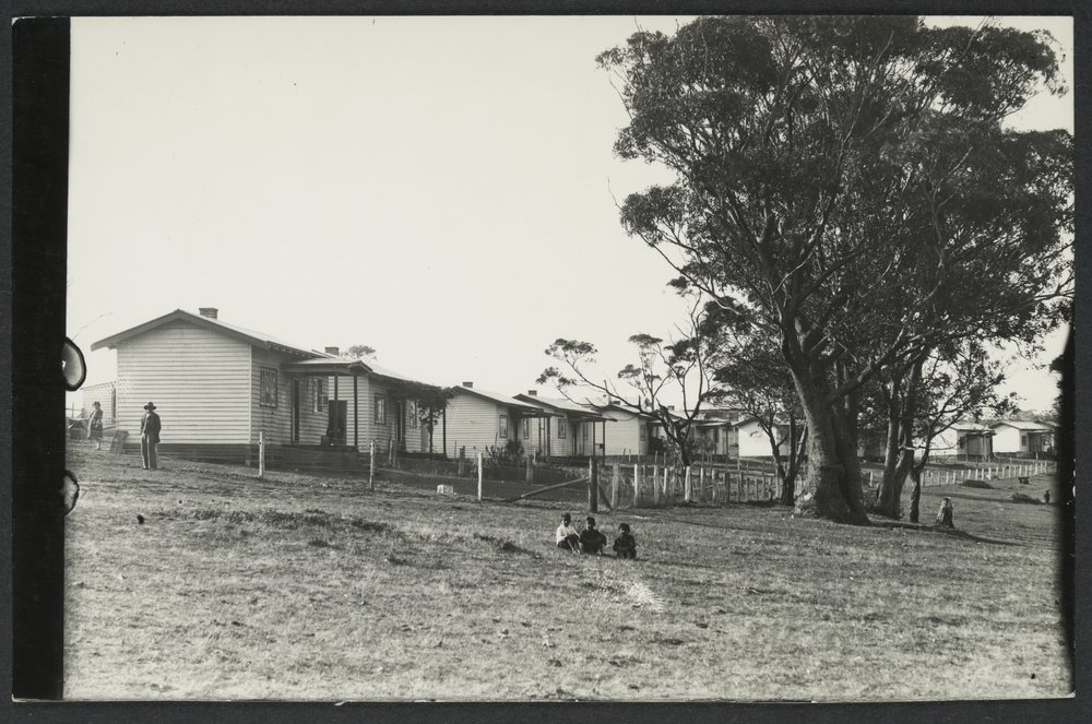 Description: This is an image of the landscape at the Lake Tyers Aboriginal Mission with dwellings in the distance.