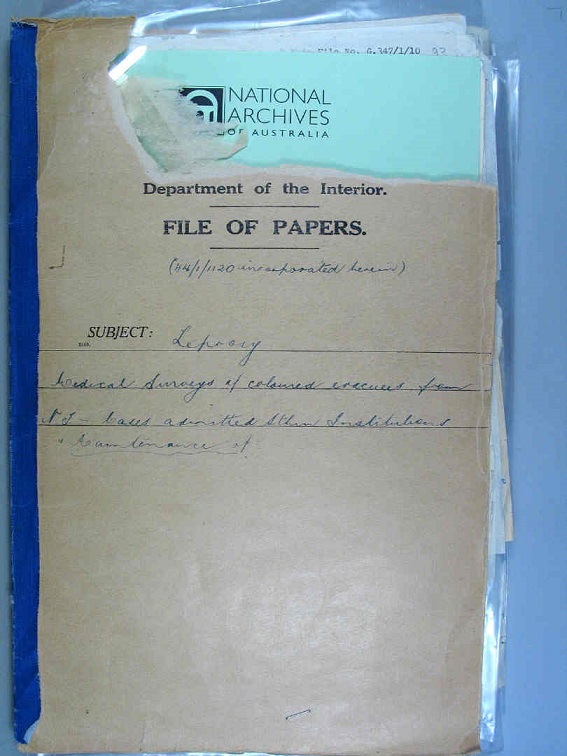 Leprosy - Medical surveys of evacuees from NT - Cases admitted southern institutions and maintenance of [altered from original title]
