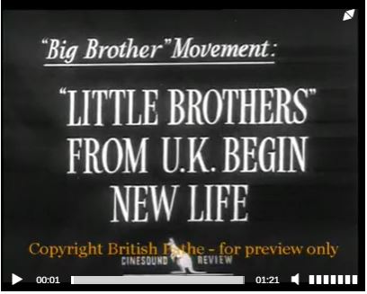 Description: This is footage from a voiceovered newsreel from 1948 about a group of child migrants from the United Kingdom to Australia, sponsored by the Big Brother Movement. It shows a ship that had 580 ‘new settlers’ on board, and states that 250 of them were under 12 years old. It mentions that some of the young people would be undergoing a period of training at the Big Brother Movement’s farm school in Liverpool (Karmsley Hills).