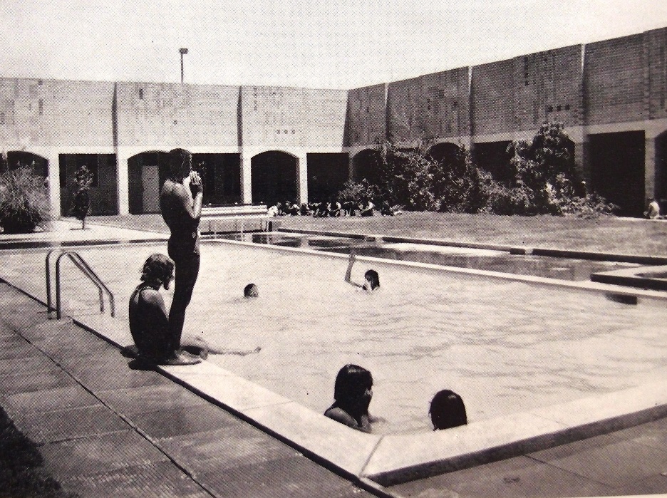 Description: ‘Longmore, swimming pool’ is a digital copy of an image included (p.46) in the Annual Report 1975 of the Department for Community Welfare. The caption reads, ‘Internal Courtyard – Assessment Section’.