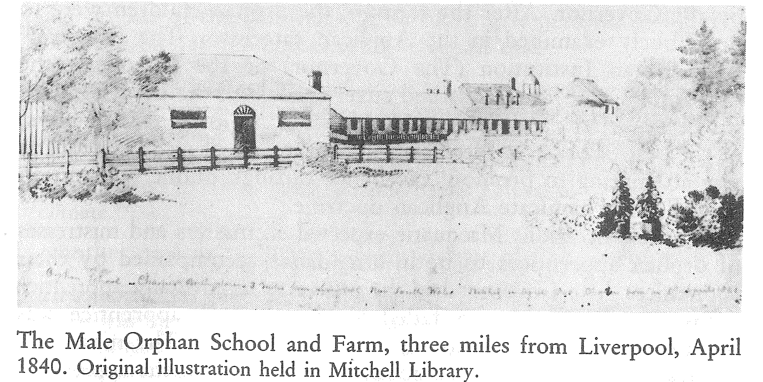 The Male Orphan School was established by Governor Macquarie in 1819 to house destitute boys aged between seven and ten. It was located on George Street, Sydney, in the former premises of the Female Orphan School. The boys were given a basic education, learned trades such as carpentry, hat and shoe making, and, from 1923, farm skills. In 1823 the School relocated to Cabramatta to a farm previously used to provide the Female Orphan School with crops and a source of income. In 1850, the Male Orphan School and the Female Orphan School came together to form the Protestant Orphan School in Parramatta. The Male Orphan School closed on 30 April 1850.