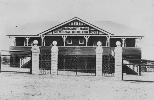 Margaret Marr Memorial Home for Boys, in Wynnum, was operated by the Methodist Church. It officially opened 1 March 1924. State children were first admitted in 1937. Margaret Marr surrendered its license in 1973 when four Family Group Homes, situated on the same parcel of land, opened.