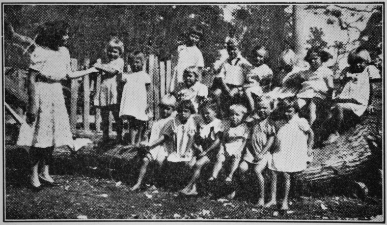 May Holt and children at Greenbushes following evacuation from the Queens Park Children's Cottage Home, Western Australia, ca. 1942.