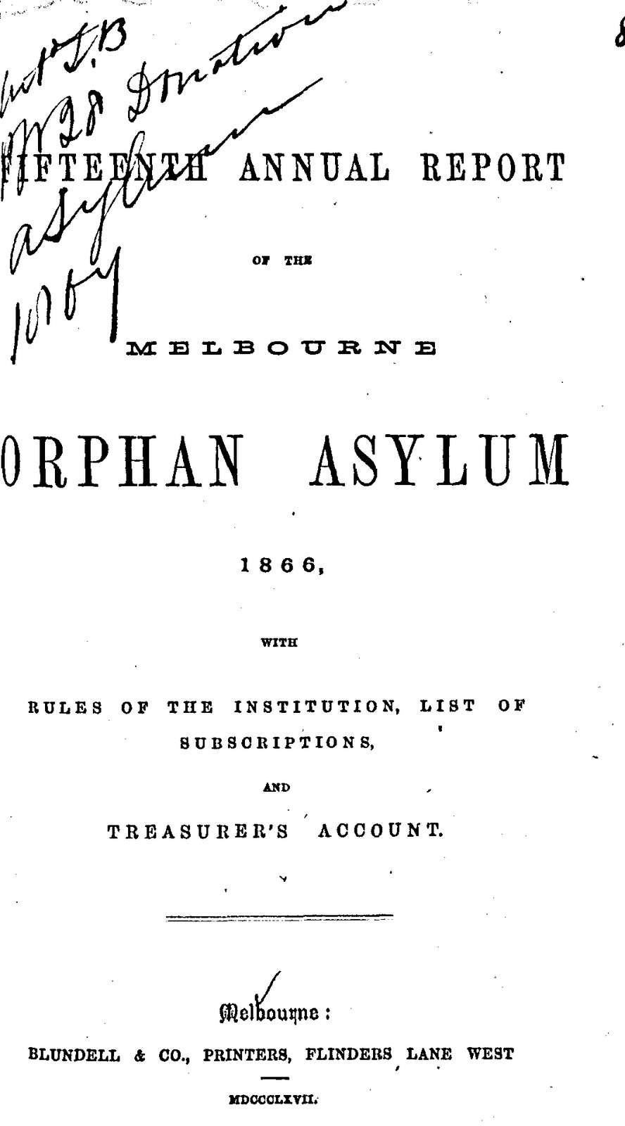 Melbourne Orphan Asylum, Fifteenth Annual Report