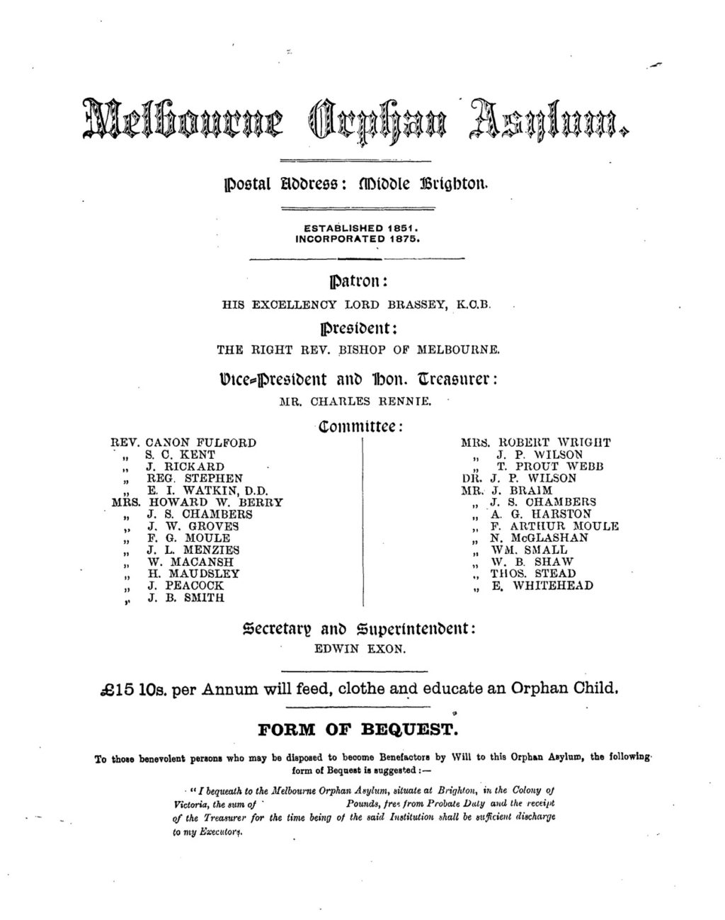 Description: This 4 page digitised document is an appeal for benefactors to donate to the Melbourne Orphanage.