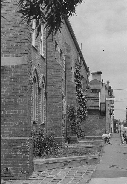 Description: This is an image of the building at 116 Fitzroy Street, Fitzroy. In the 1980s, it was a rooming house run by the Brotherhood of St Laurence, known as Millott House. This building is the former site of Mission House, the headquarters of the Mission to the Streets and Lanes.
