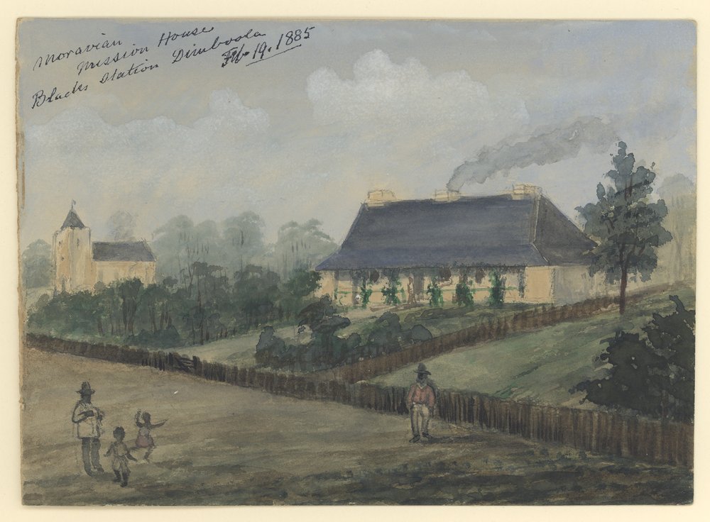 Description: This is a painting by S. H. Roberts of the Mission House on Ebenezer Mission.