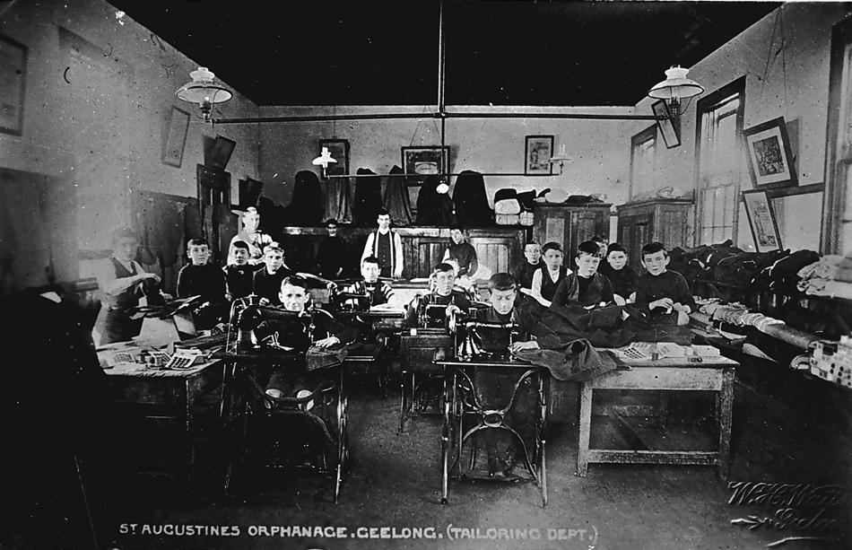 Description: Orphans being trained as tailors at St Augustine’s Orphanage.